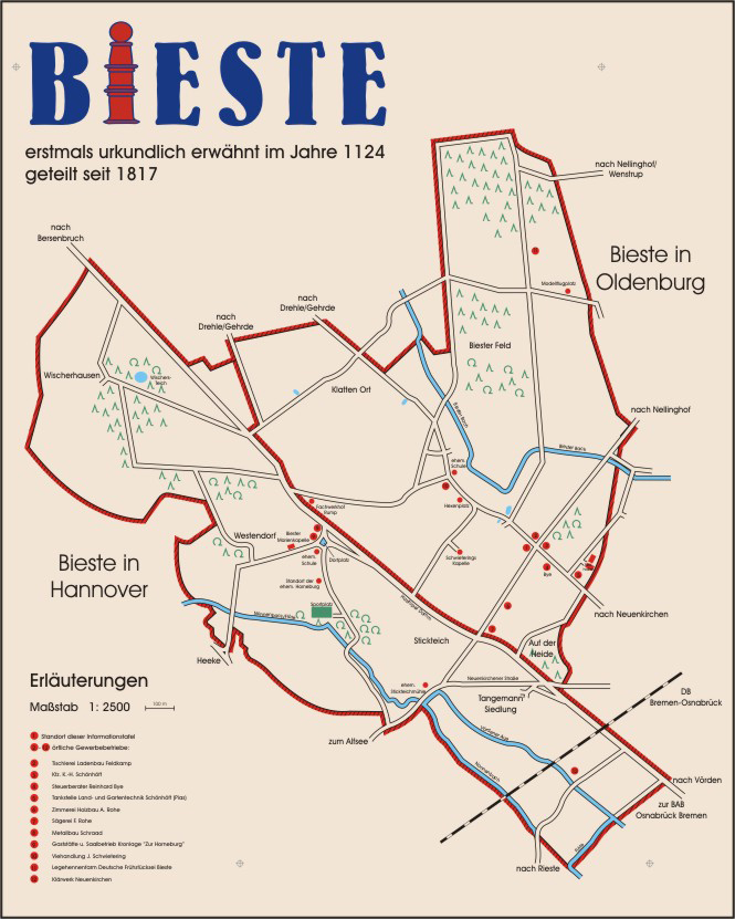 Heute gehört Bieste i.H. (in Hannover) zur Gemeinde Rieste im Landkreis Osnabrück und Bieste i.O. (in Oldenburg) zur Gemeinde Neuenkirchen-Vörden im Landkreis Vechta.